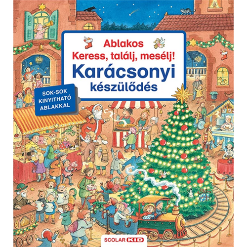 Már mindenki nagyon várja a karácsonyt! Otthon, az óvodában, a barátoknál – mindenhol folyik a készülődés az év legszebb ünnepére.A Keress, találj, mesélj! sorozat készítői minden oldalpár szélén kiemeltek néhány tárgyat, élőlényt vagy személyt, melyeket a gyerekek megkereshetnek az adott oldalpár nagy méretű képén. A meglepetéseket rejtő ablakok további keresésre és mesélésre ösztönzik a gyerekeket. A böngészés öröme garantált!