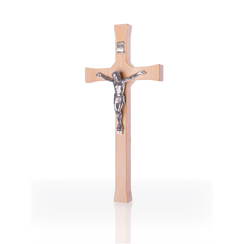 Feszület, akasztós klasszikus - fa (natúr, 18 cm)