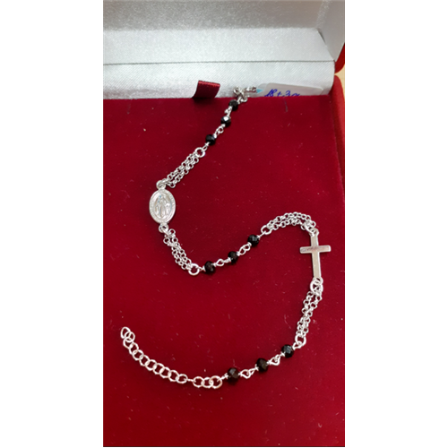 Vékony kivitelű ezüst rózsafüzér karkötő, karabineres, állítható maximális kerülete 18-21 cm.