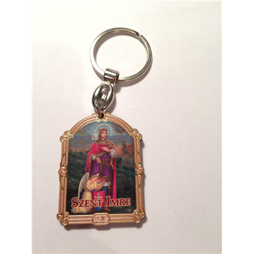 Fémkulcstartó, Szent Imre ábrázolással. ( Faplakett )