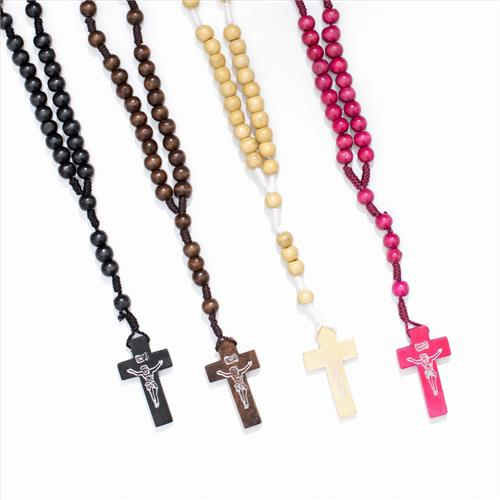 Hagyományos vagy öttizedes kötött, fa rózsafüzér, 4 mm-es gyöngyökből.