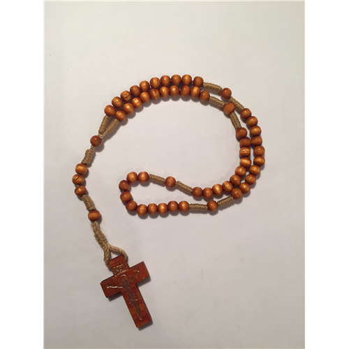 Hagyományos vagy öttizedes kötött, fa rózsafüzér, 4 mm-es gyöngyökből.