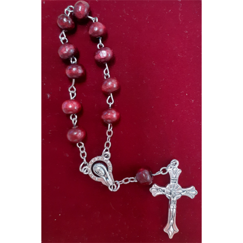 Rózsafüzér, fa, tizedes - bordó (Mária összekötővel, kereszttel)
