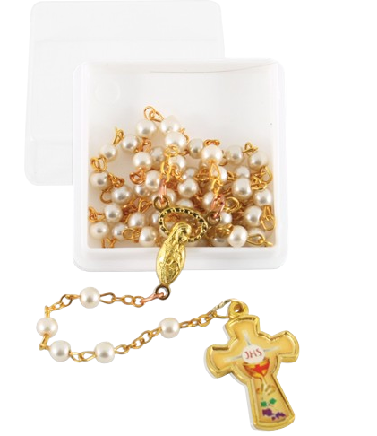 Rózsafüzér - gyermek rf. tekla szemekkel elsőáldozásra (dobozban, fehér)