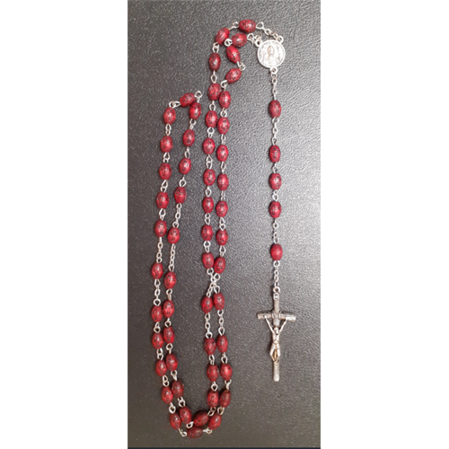 Rózsafüzér, szemeken keresztekkel - fa (bordó)