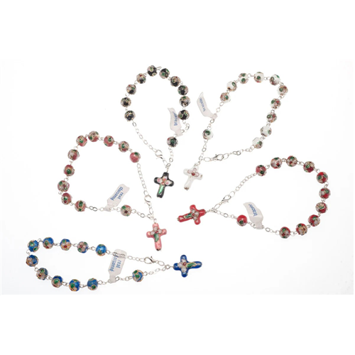 Kézzel készített, olasz, tizedes tózsafüzér karkötő , 8 mm-es zománcozott gyöngyökkel és sterling ezüst dróttal, egyedi és kifinomult stílussal.