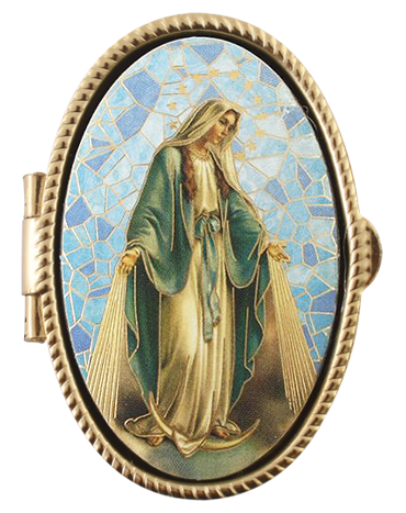 Rózsafüzértartó, fém, ovál - (Segítő Szűzanya szentképpel, 5x7 cm)