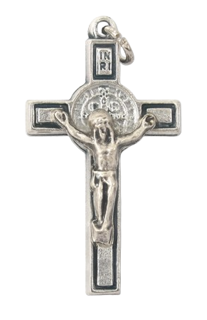 Szent Benedek feszület - fém (ezüst színű, 4 cm)