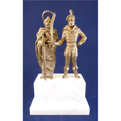 Kligl Sándor: Szent Pál másodmagával bronz szobor együttes márvány talapzaton, 26 cm.
