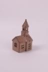Karácsonyi templom, porcelán LED-es (15 cm, barna)
