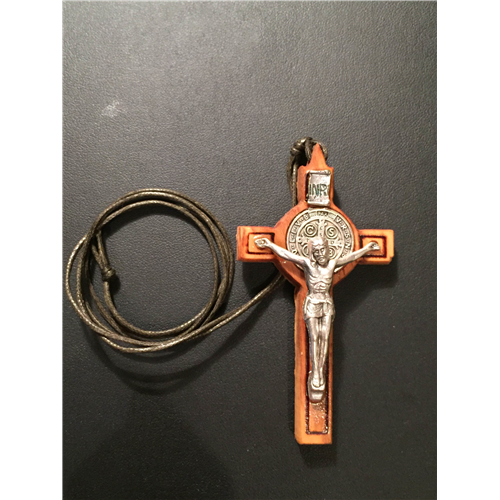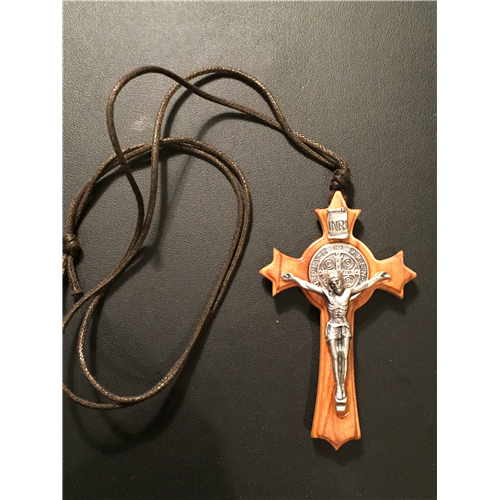 Nyakbavaló, olajfa kereszt - Szent Benedek (7 cm)