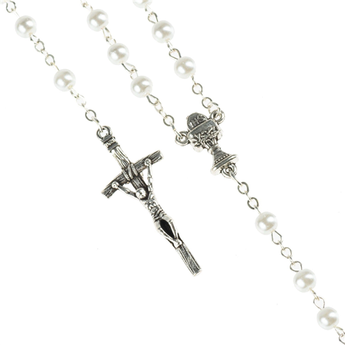Rózsafüzér, elsőáldozásra - fehér üveggyöngy (5 mm)