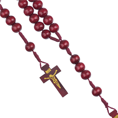 Rózsafüzér, fa (bordó, 12 mm)