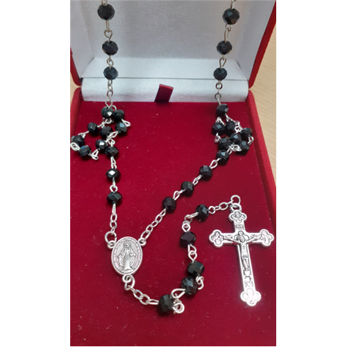 Rózsafüzér- fazettált (műanyag, fekete, 6 mm)