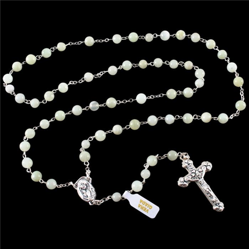 A rózsafüzér 6 mm átmérőjű csiszolt ásványi golyókból készült.