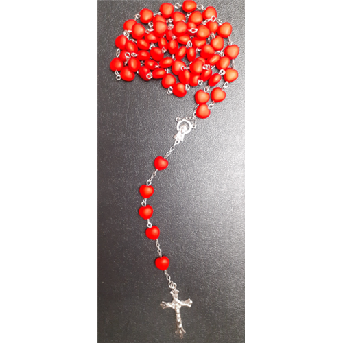 Rózsafüzér, szív alakú műanyag szemekkel - piros
