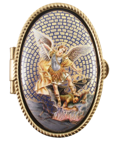 Rózsafüzértartó, fém, ovál - (Szent Mihály szentképpel, 5x7 cm)