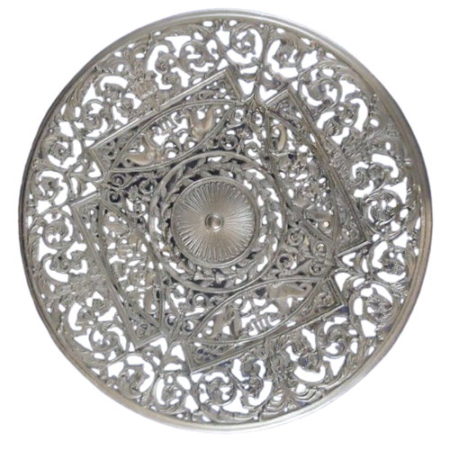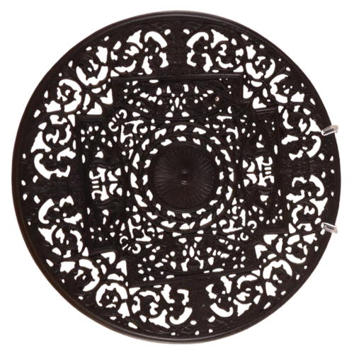 Áttört öntöttvas dísztál Buderus jelzéssel, átmérője 28 cm.