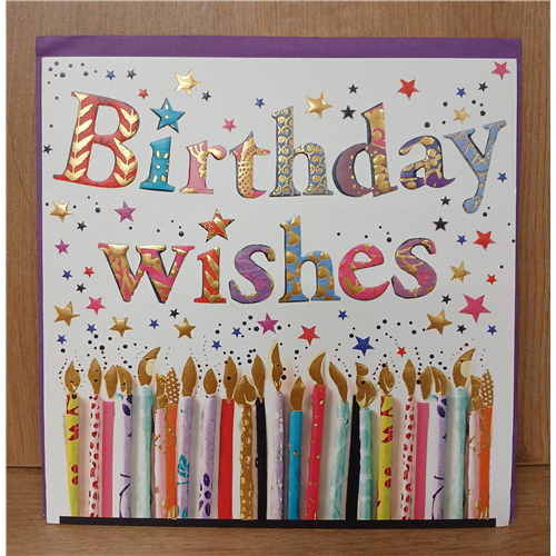 Születésnapi üdvözlőlap, dombornyomott. Lila borítékkal.