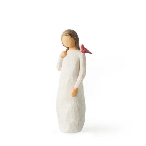 Ez a Willow Tree Messenger figurája azt az érzést hordozza magában, hogy „vigasztalást és szeretetet hozunk messziről”.