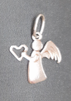 Medál, ezüst - angyal szívvel (1,5 cm)
