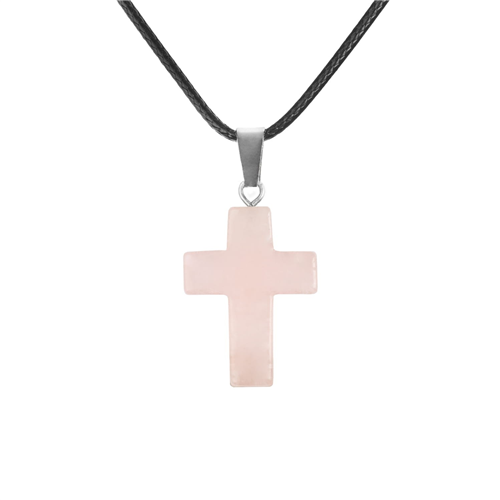 Nyakbavaló lánc, természetes kőből faragott kereszttel (rózsakvarc)