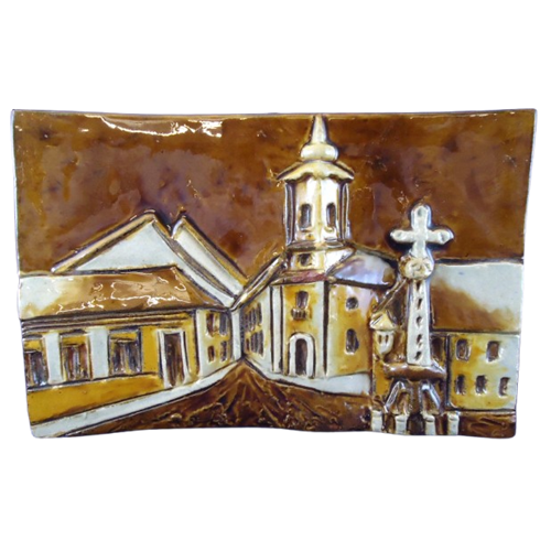 Szentendrei kerámia relief, 18*27 cm, hátulján jelzett.