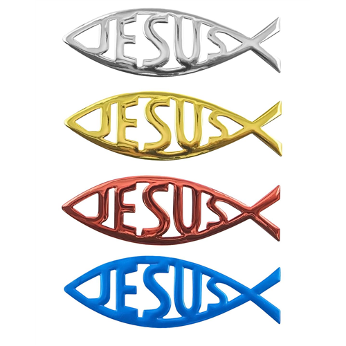 Autós embléma - Halas matrica, JESUS felirattal, kék (5x15 cm)