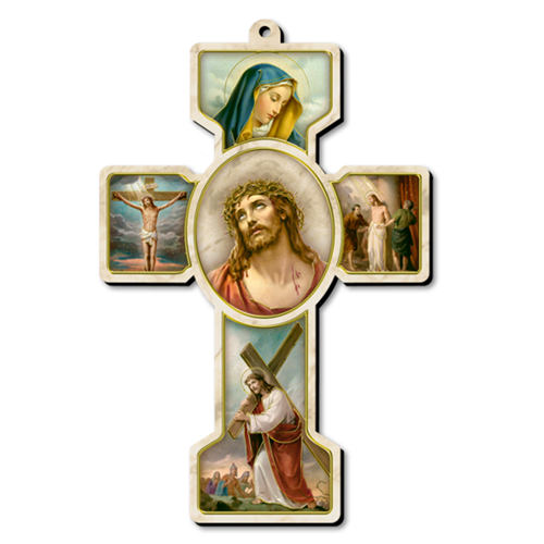 Faplakett kereszt - Fájdalmas Krisztus (14,5 cm)