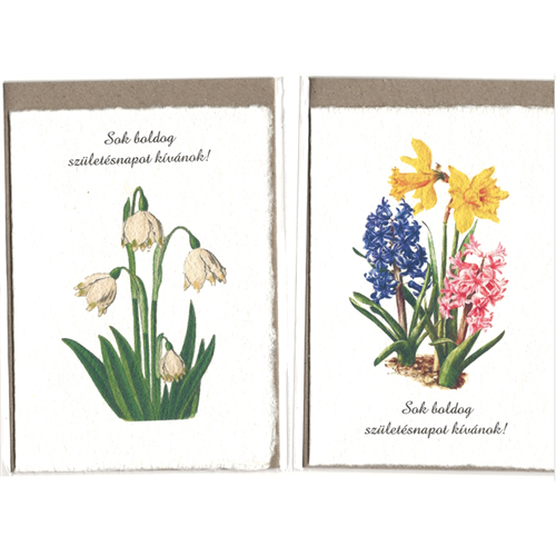 Dupla merítettpapíros képeslap, natúr színű borítékkal.